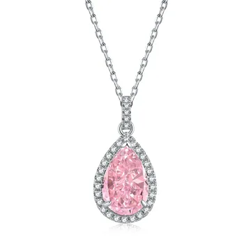 MEENOY moda 925 plata esterlina 8*12Mm rosa amarillo gota de agua laboratorio cultivado collar de diamantes para mujer