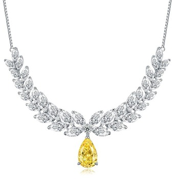 MEENOY Bulk Dinner Style Cadena de oreja de trigo de 12 quilates Collar con colgante de diamante de gota de agua de zafiro amarillo